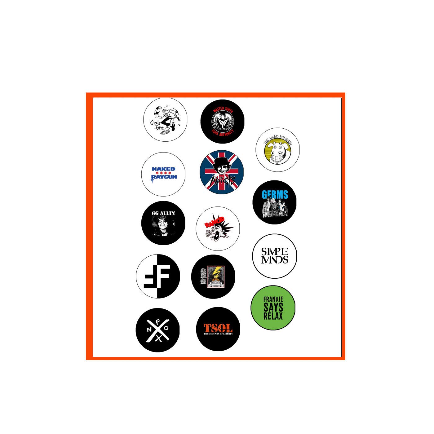 1990's Rebel Punk set 14 Pinbacks for Jackets, Backpacks, etc.