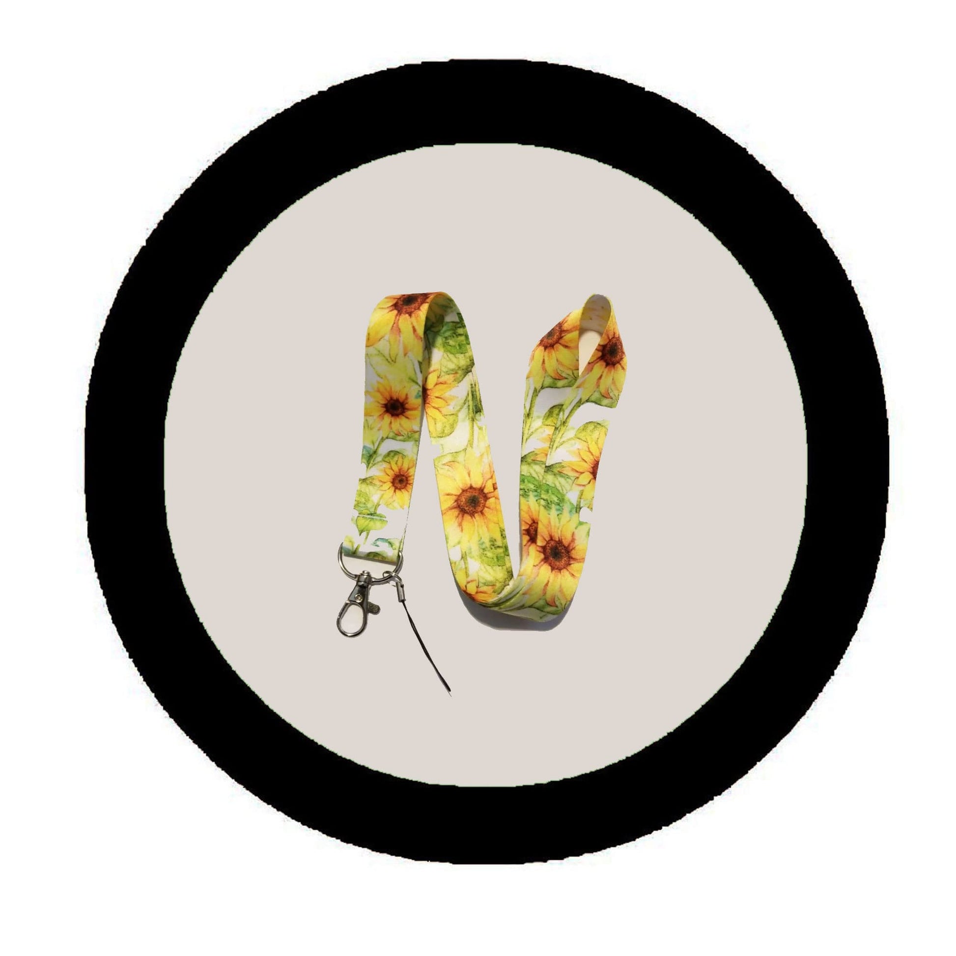 Sunflower Yellow Green Leaves Lanyard Beautiful Themed Lanyard - Hook & Phone String - Keychains or ID Badge Holder