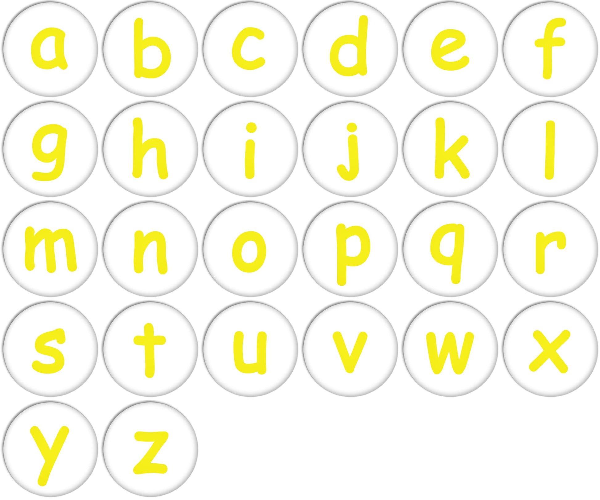 English Alphabet Lower Case Yellow Colour Pinback Buttons Badges/Pin 1 Inch Set of 26